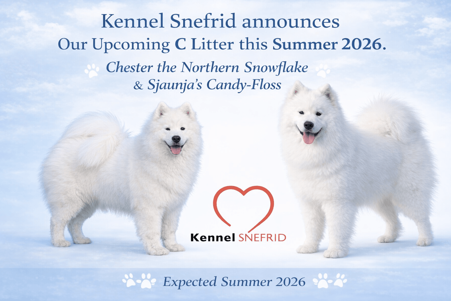 KENNNEL SNEFRID PRÆSENTERER VORES NYE SAMOJED TÆVE FRA POLEN AJDA THE LAND OF ICE. VI TAKKER BASIA ADAMCZYK MALTAYED