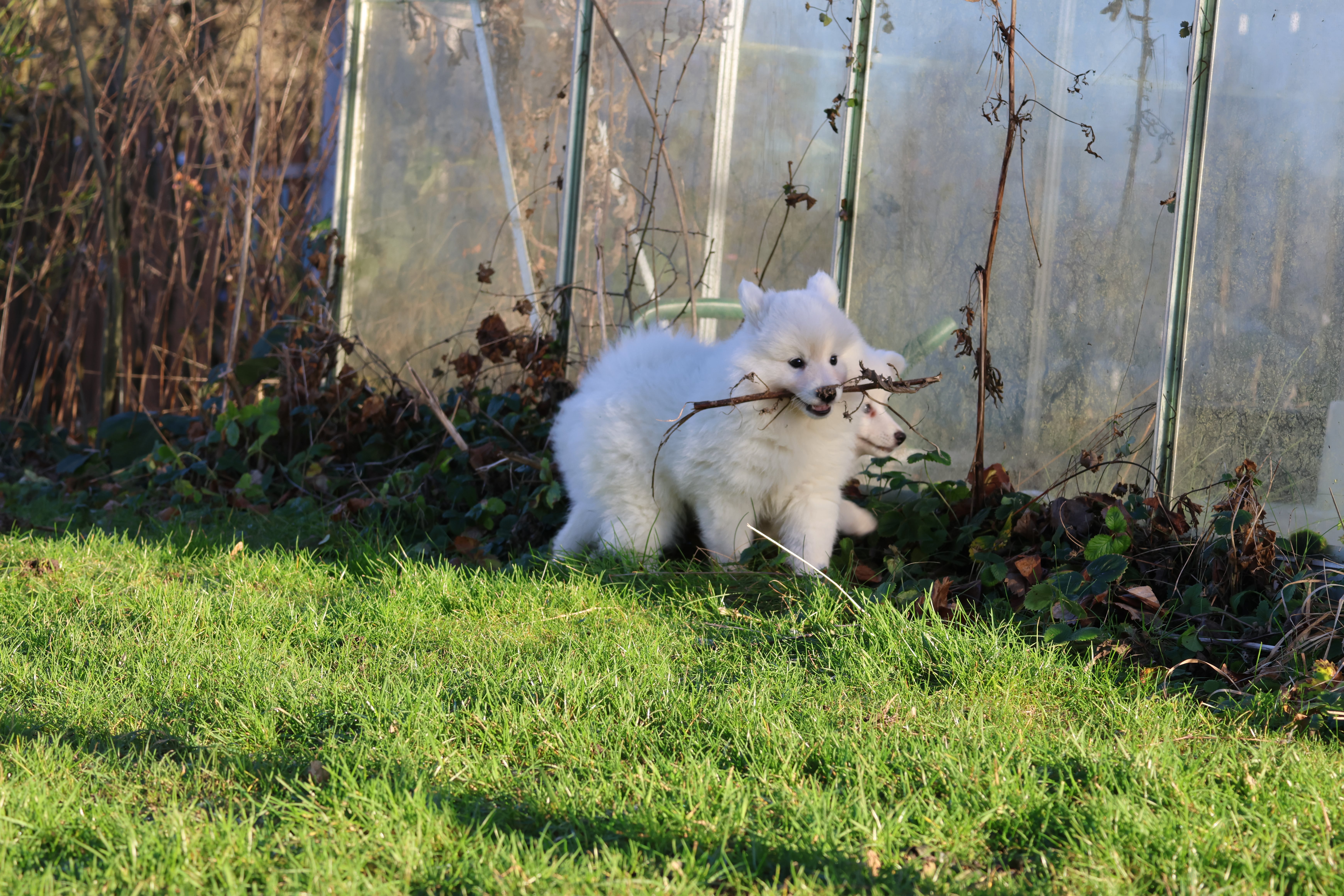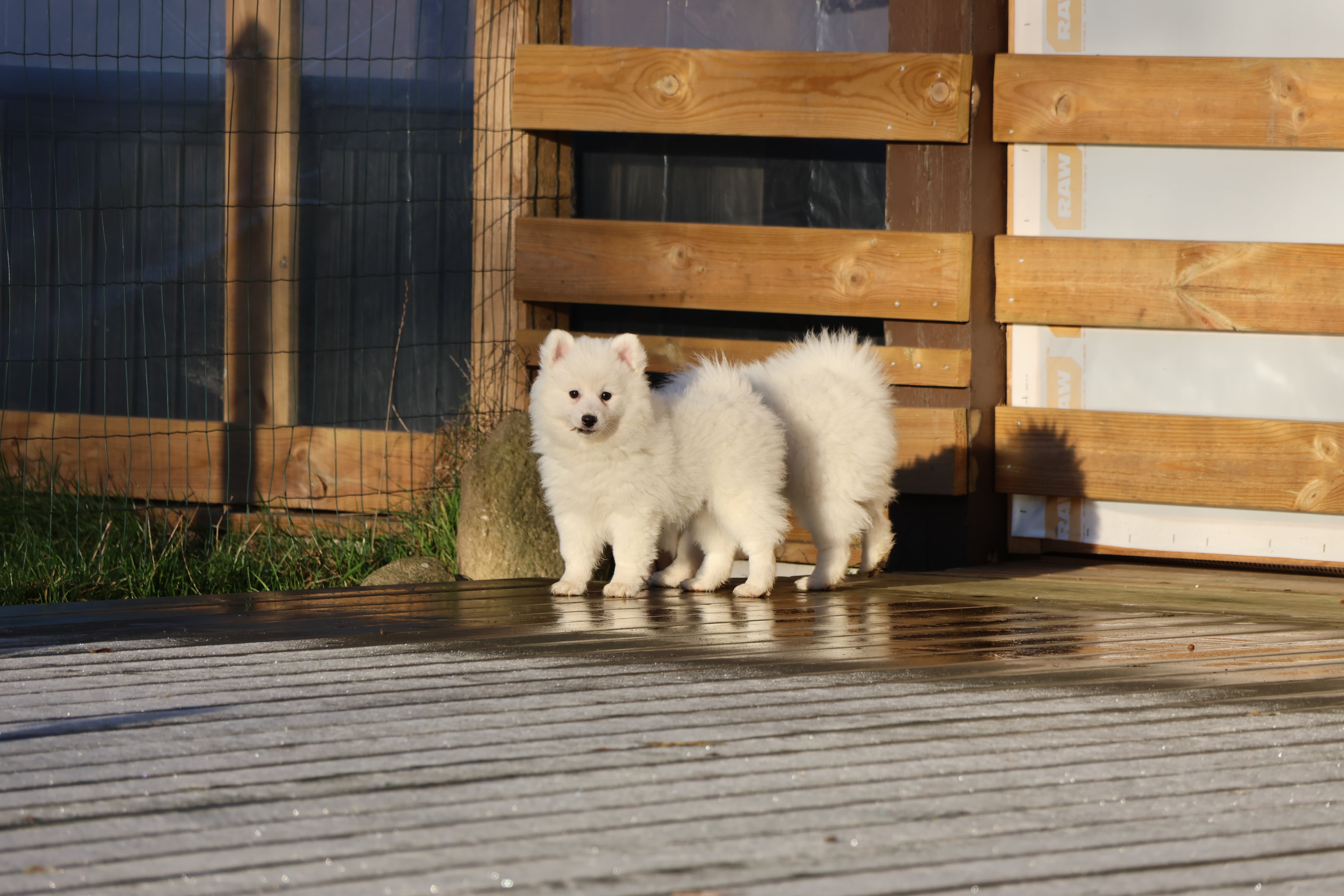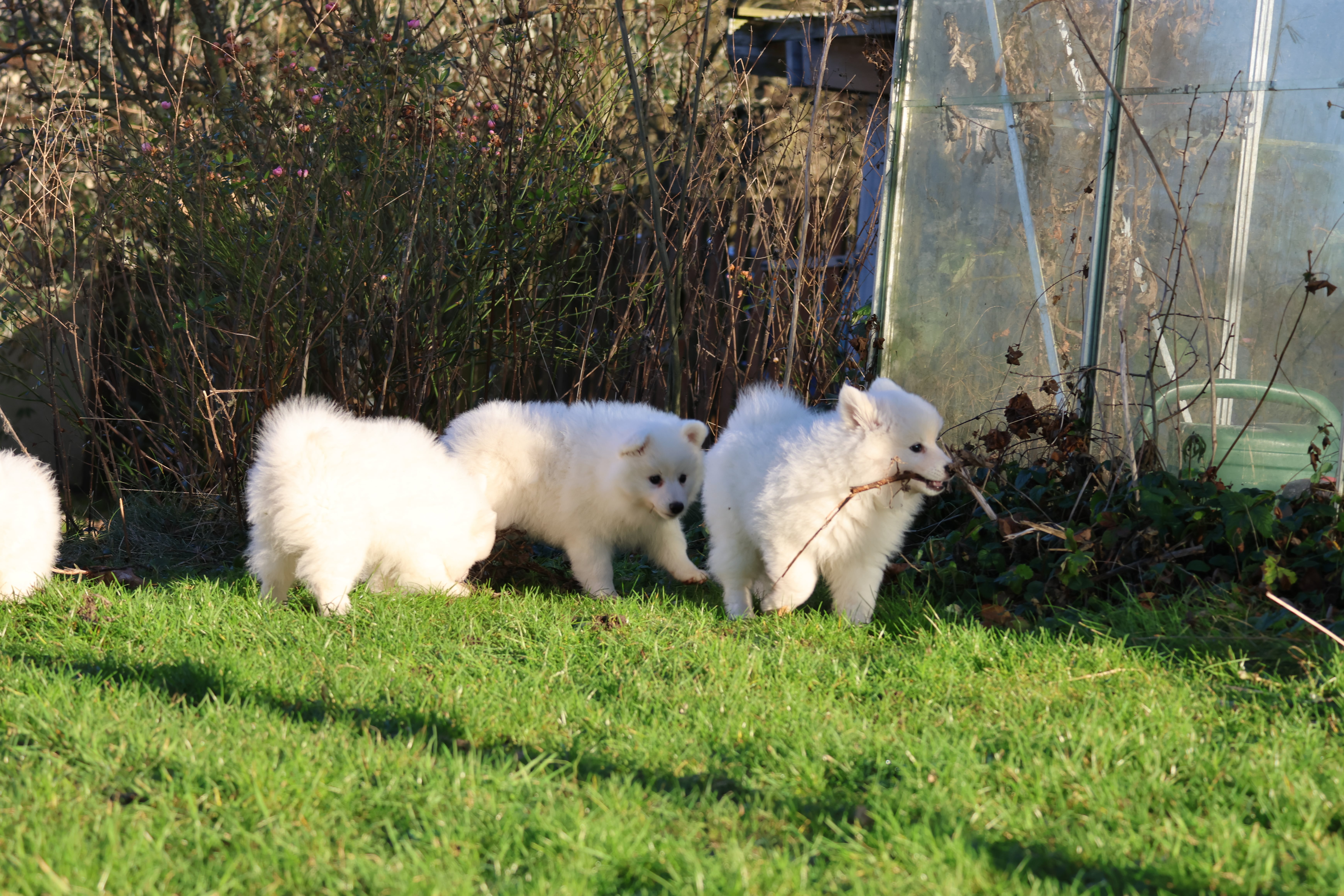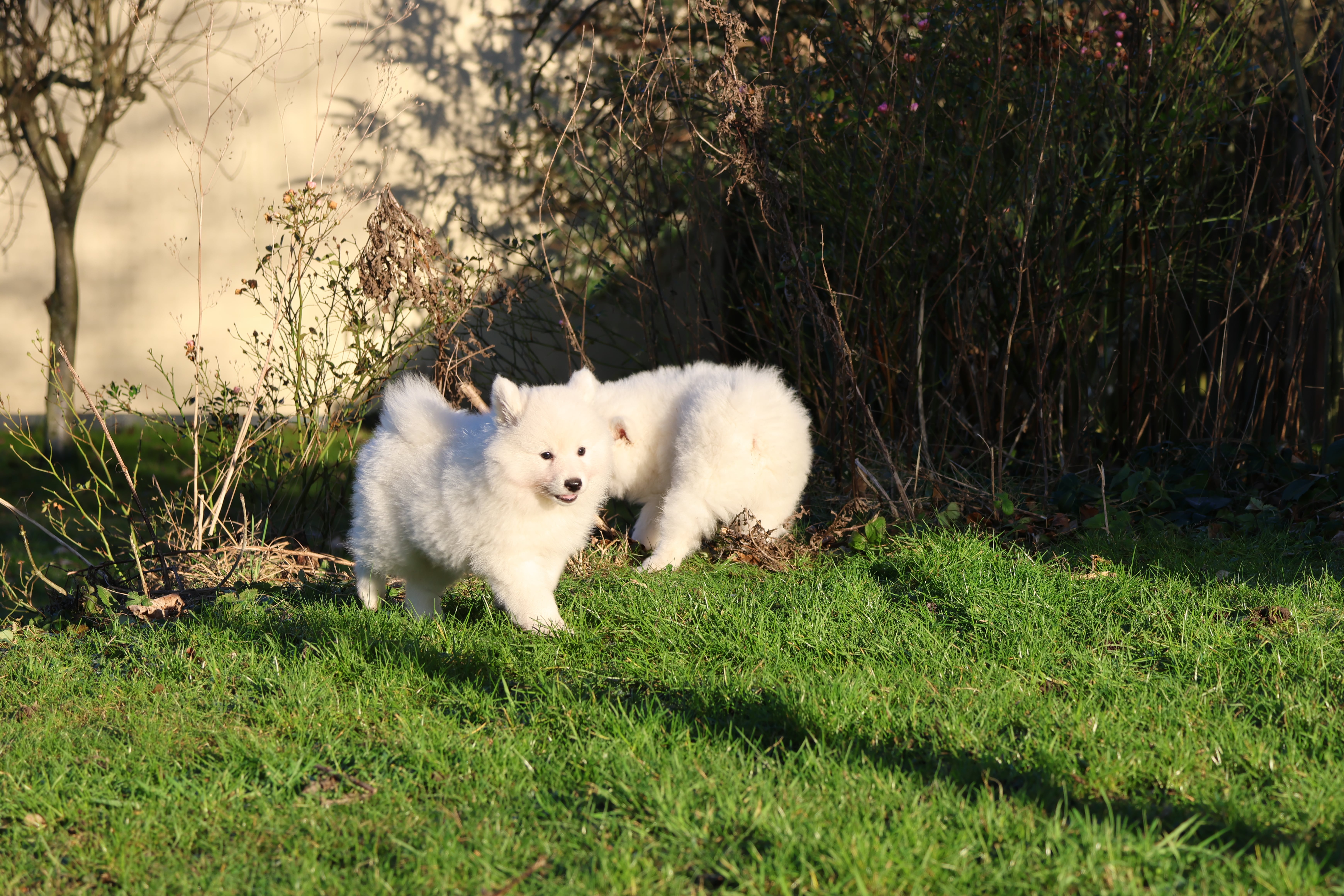 Our current litter white Mittelspitz. 2 puppies are avalible