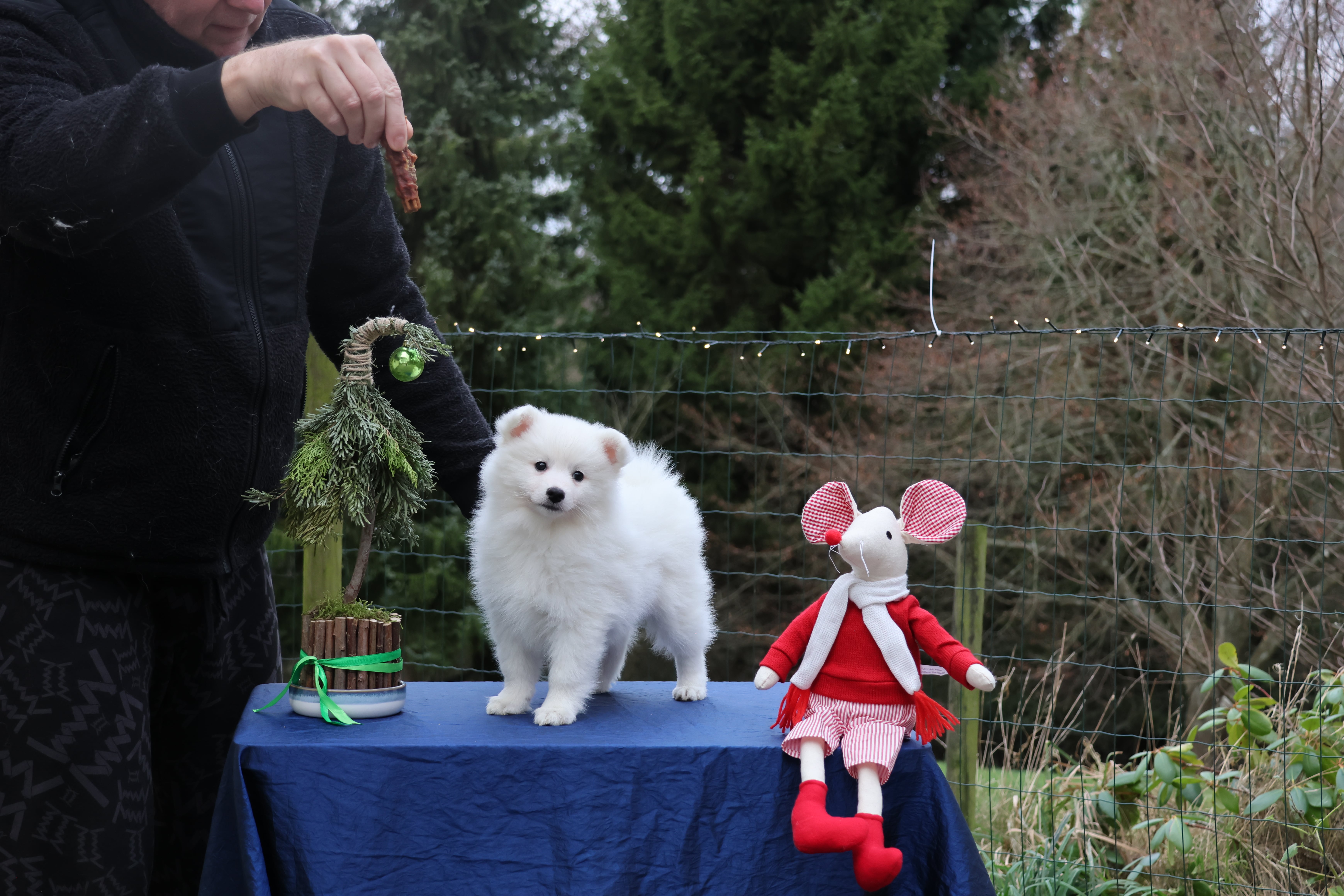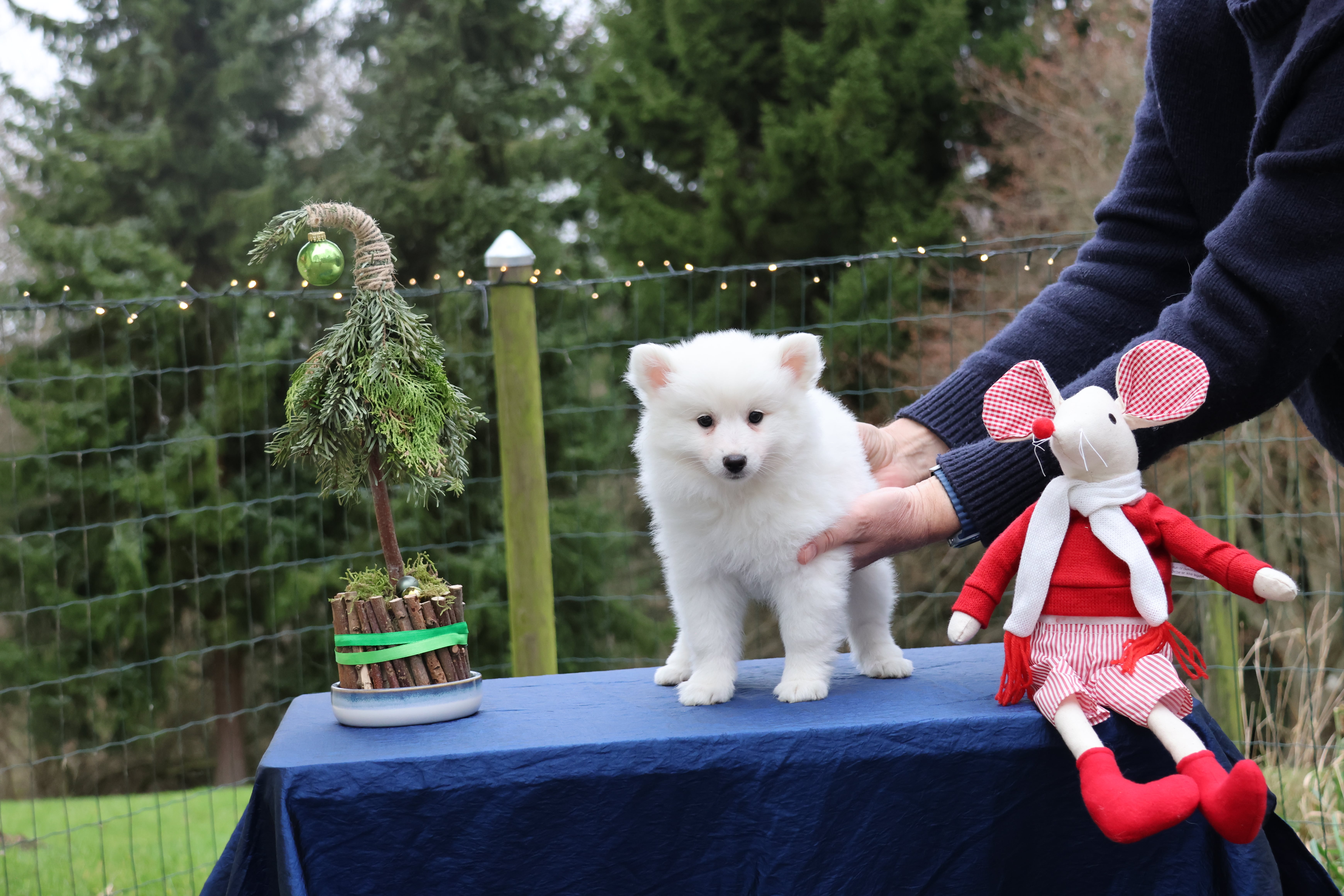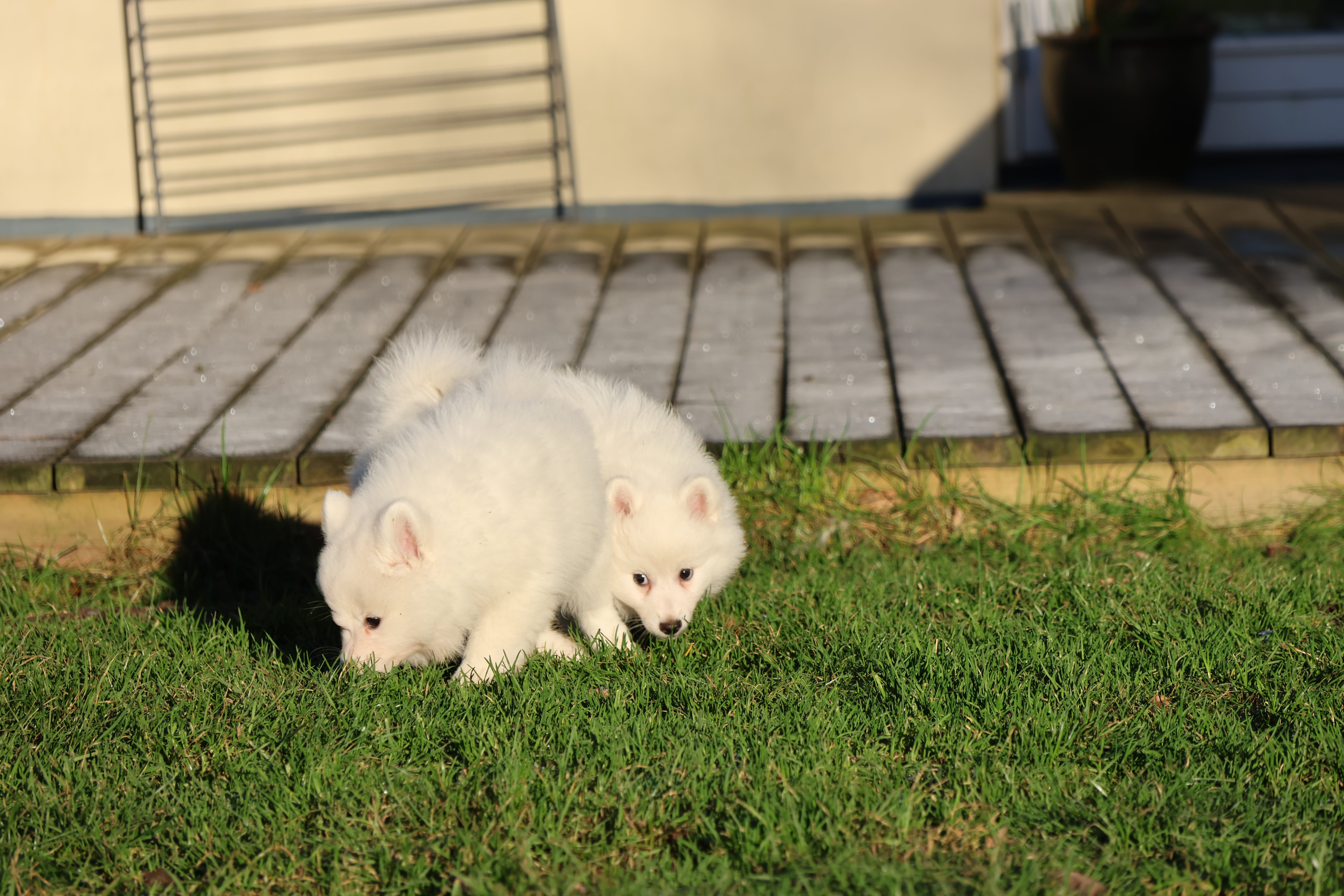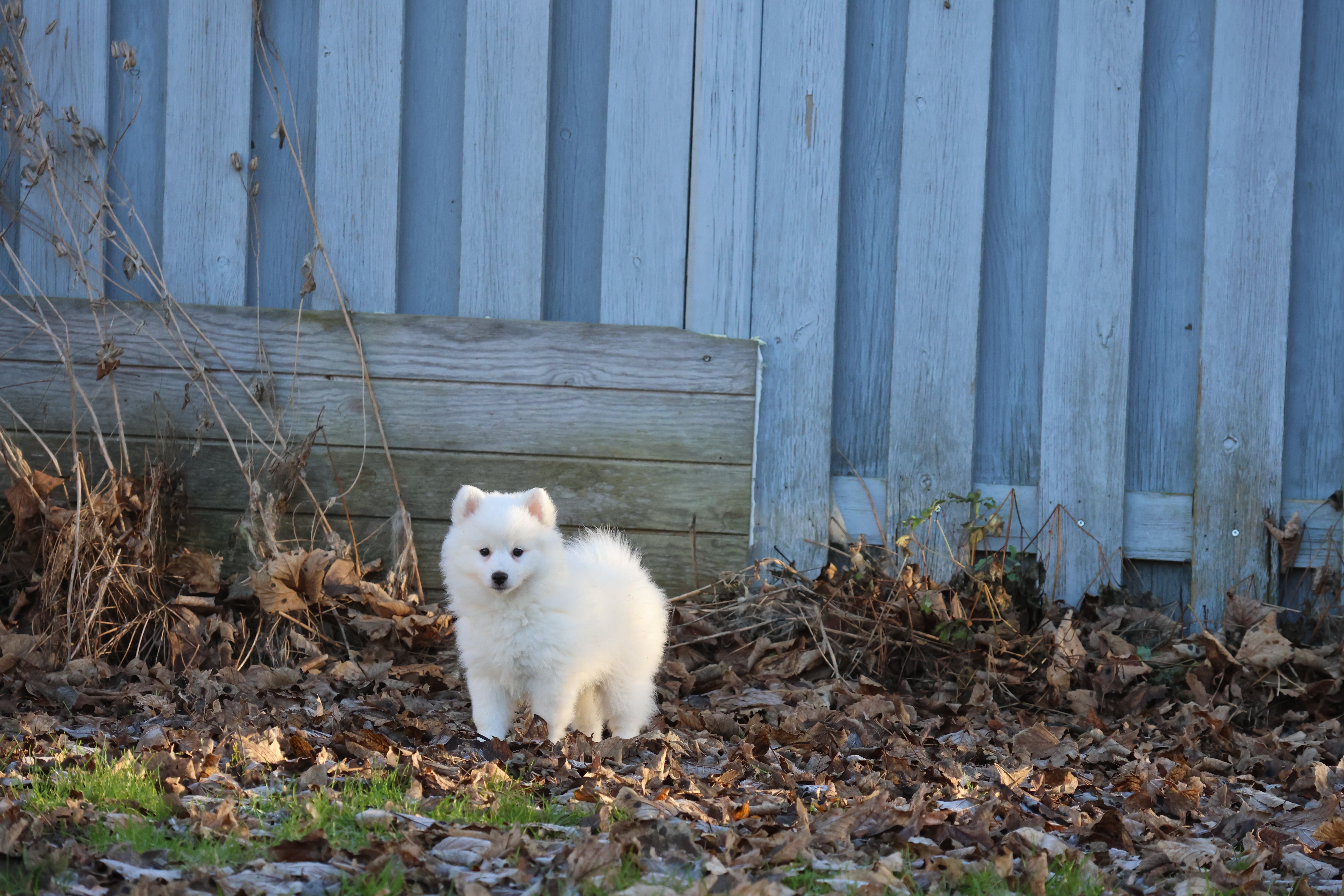 Our current litter white Mittelspitz. 2 puppies are avalible